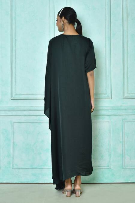 Buy_Naintara Bajaj_Green Mini Silk Embellishment Shell Boat Asymmetric Hem Kaftan_Online_at_Aza_Fashions