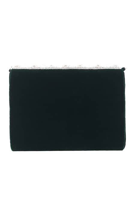 Green Crystals, Beads Velvet And Embellished Flap Bag