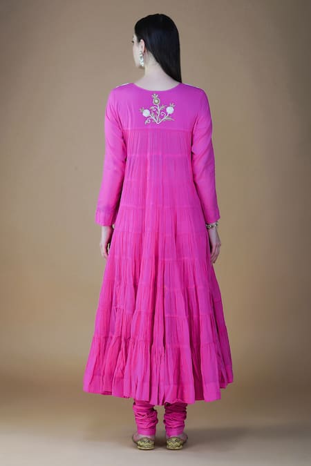 Pink Cotton Sequins, Beads Round Neck 36 Kali Anarkali Pant Set