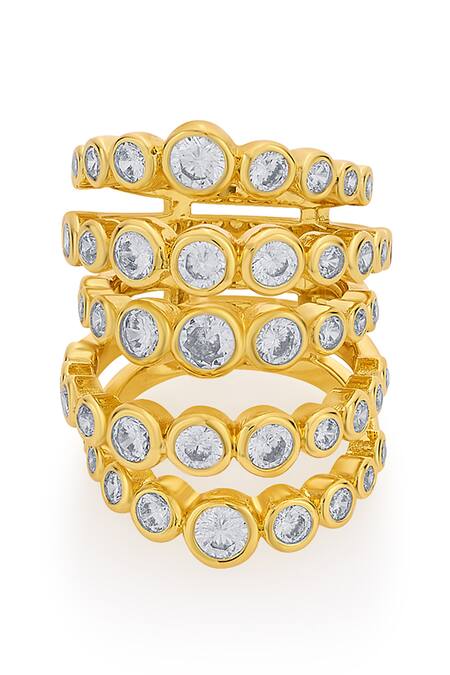 Gold Plated Crystals Cz Embellished Multi Layered Ring