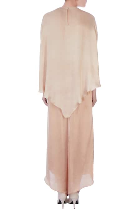Beige Silk, Satin Round Asymmetric Cape Tunic