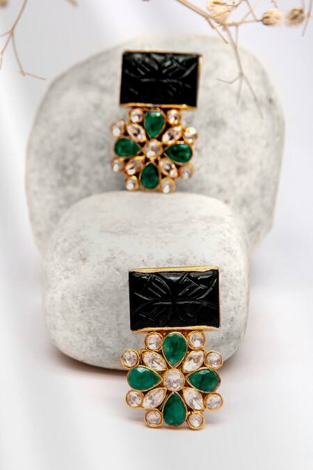 Moissanite stone embellishments, Carving details on the studs, Floral arrangement of stones