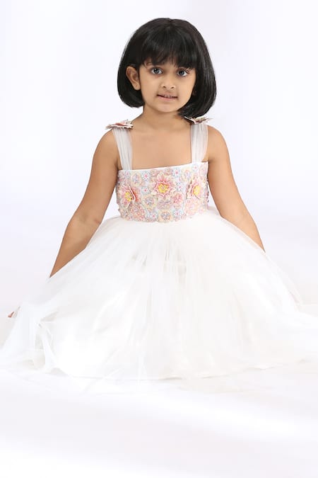 Buy_Neha Gursahani_Ivory Tulle Embroidery, Beads Bodice Gown _at_Aza_Fashions