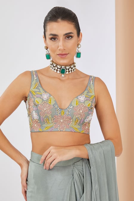 Zari embroidered sequin embellishments, Padded blouse with scooped back, Attached lining for comfort