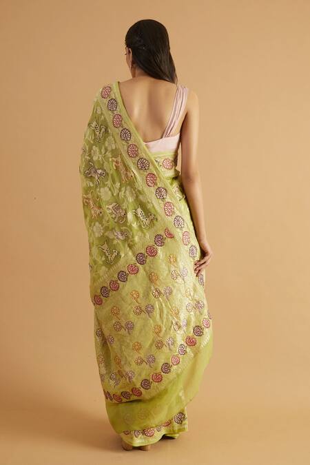 Green Georgette Embroidery Gavi Handwoven Shikargah Work Saree
