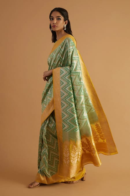Green Organza Jhansi Flora Chevron Handwoven Saree