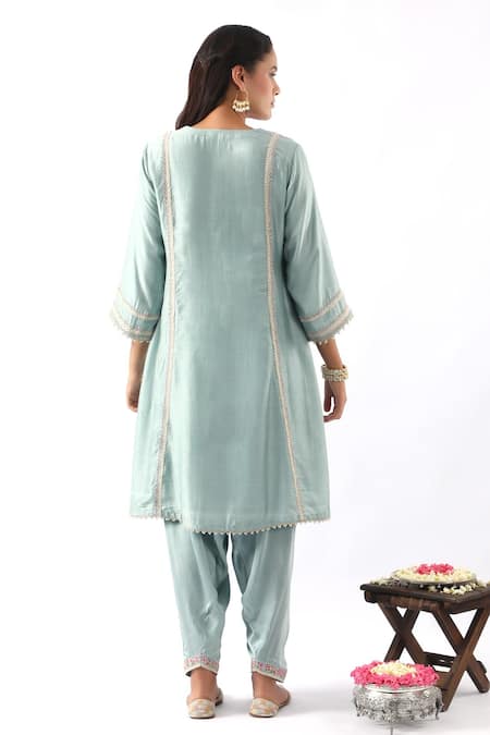 Blue Organza, Chanderi Silk, Modal Embroidery Round Flower Kurta Salwar Set