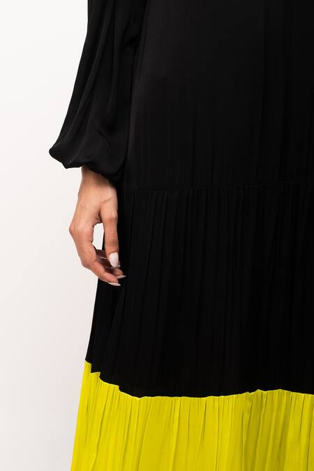 Black Bamboo, Silk Round Neck Contrast Panel Dress