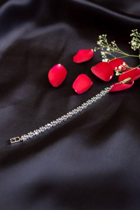 Zirconia embellishments in varied shapes, White rhodium finish for shine, Secure clasp closure for comfort