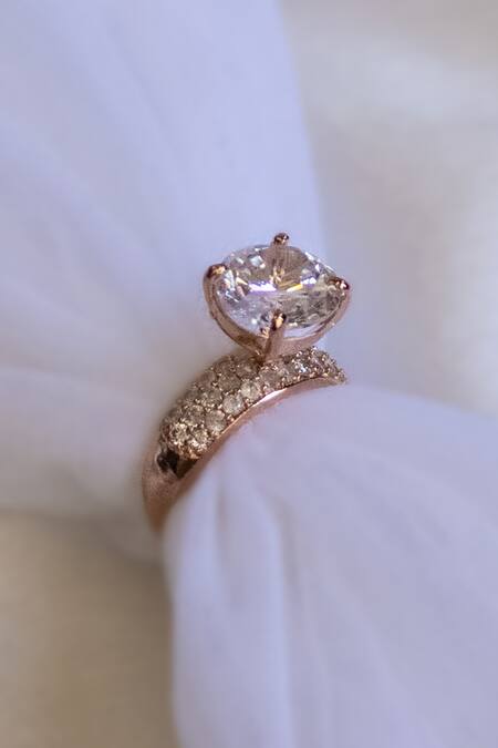 Gold round shaped ring featuring a central zirconia stone with embellishments