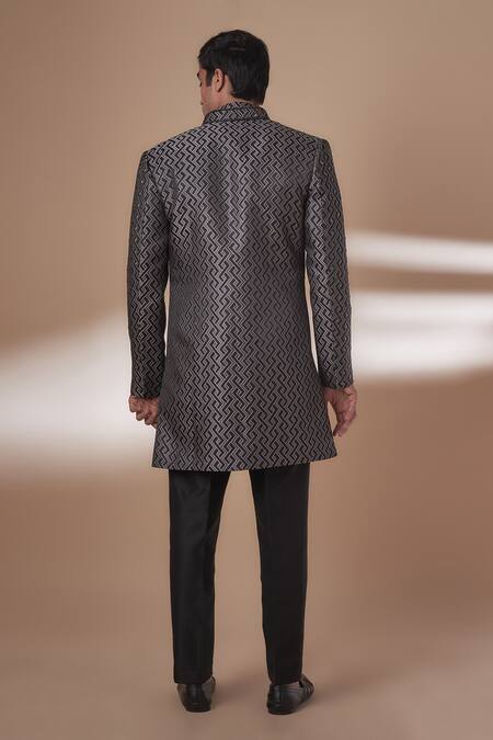 Black Jacquard Basket Weave Embroidery Sherwani Kurta Set