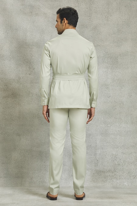 Green Suiting Fabric Plain Patch Pocket Jacket And Pant Set