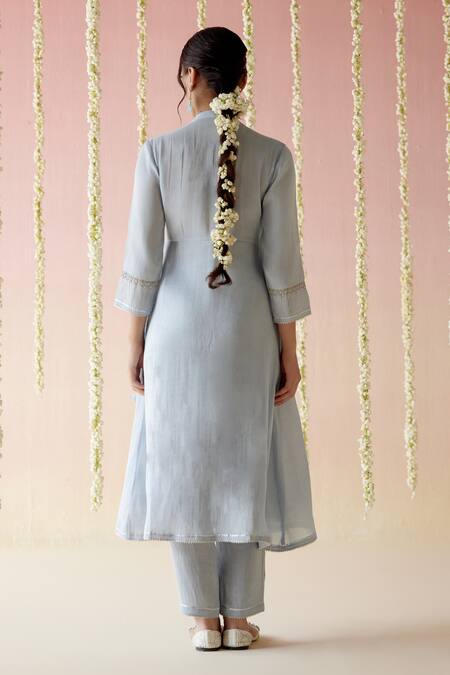 Blue Tissue, Crepe Gota Patti, Tassels V-neck Aari Embroidered Angrakha Pant Set