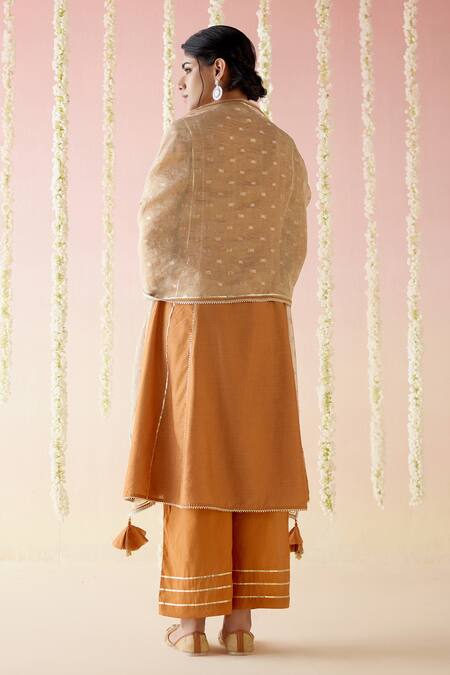 Brown Chanderi, Crepe Gota Patti, Tassels Cheeta Embroidered Kurta Pant Set