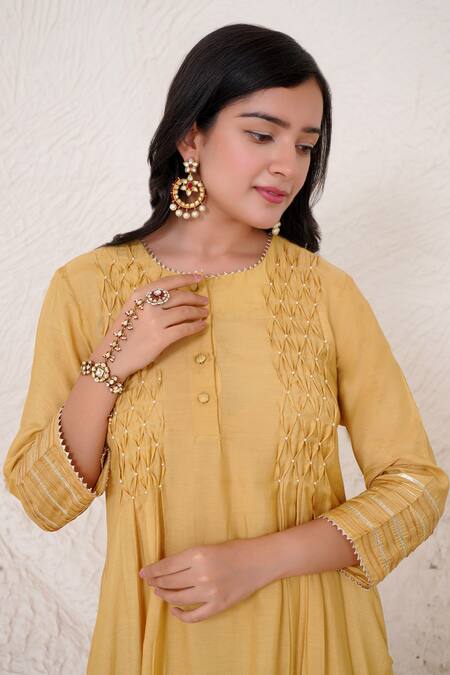 Gold Silk, Modal, Chanderi Gota Patti, Pintucked Kurta And Wide Leg Pant Set