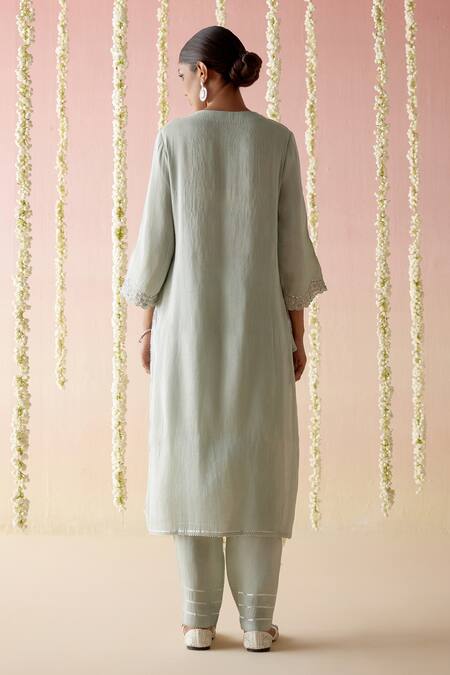 Blue Tissue, Chanderi Gota Patti, Thread Embroidered Straight Kurta Pant Set