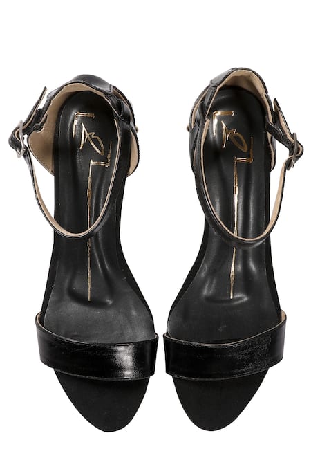 Placement pearl embellishment on the heel., Adjustable strap with buckle closure for a secure fit.