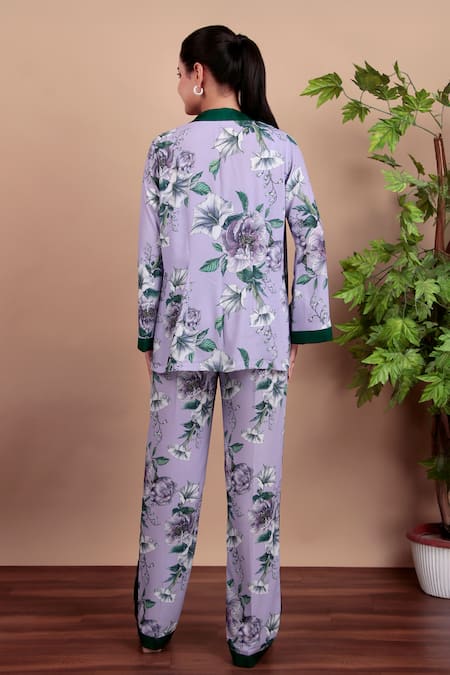 Buy_Nidhi Kejriwal_Purple Crepe Square Neck Floral Print Blazer Set_Online_at_Aza_Fashions