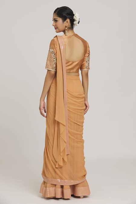 Pleated detailing on the saree, Embroidered border for added elegance, Intricate embroidery on the blouse
