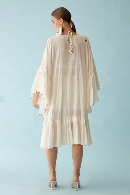 Cream cape featuring cascading flared sleeves and a frilly hem