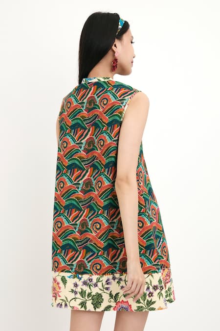Multi Color 100% , Lining 100% Floral Motifs, Waves Painted Tunic