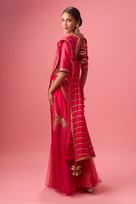 Pink Organza, Georgette, Gota Patti, Double Layered Lehenga Set