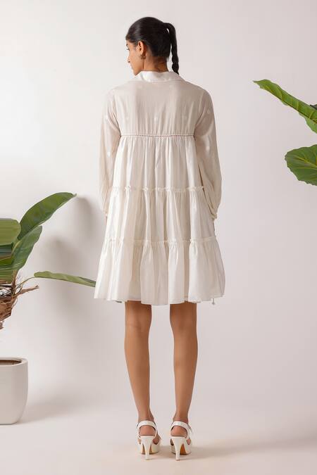 Cream Chanderi dress featuring Jamdani embroidery and a tiered design