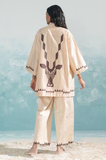 Buy_Ikai By Ragini Ahuja_Beige Cotton Applique, Cut Work Nile Cut-work Pant_at_Aza_Fashions