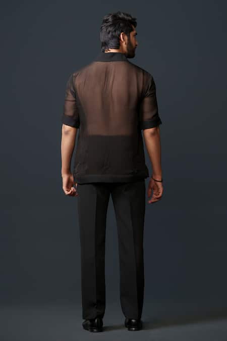 Buy_Niloufer By Aasif Ally_Black Tissue, Crepe, Cotton Sheer Top And Pant Set _Online_at_Aza_Fashions