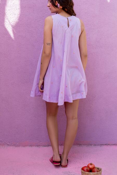 Purple Cotton Kota Embroidery Strawberry Scoop Neck Berry Short Dress