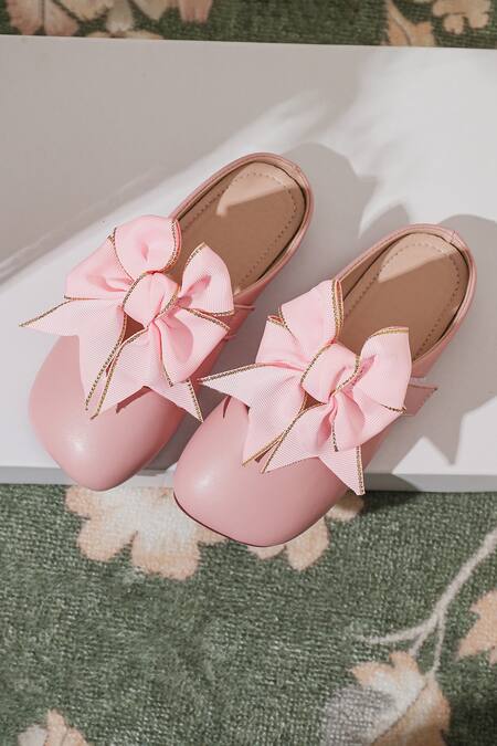 Pink Fancy Bow Embellished Mules