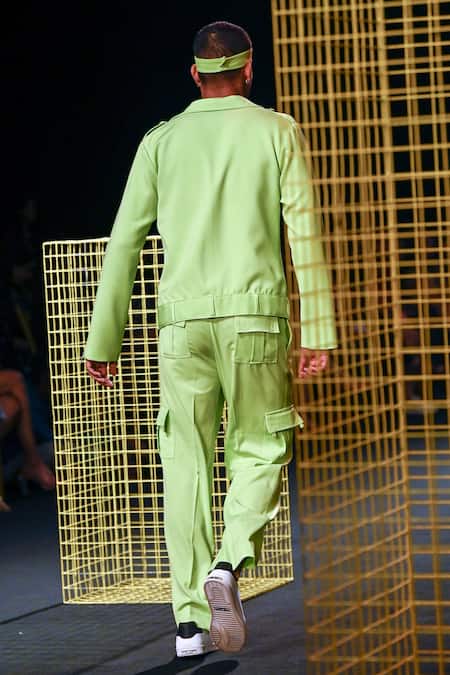 Lime green baggy pant with pocket detailing.
