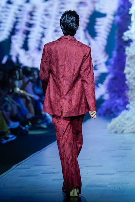 Nirmooha_Red Embroidery Chantilly Lace Embellished Pant _Online_at_Aza_Fashions