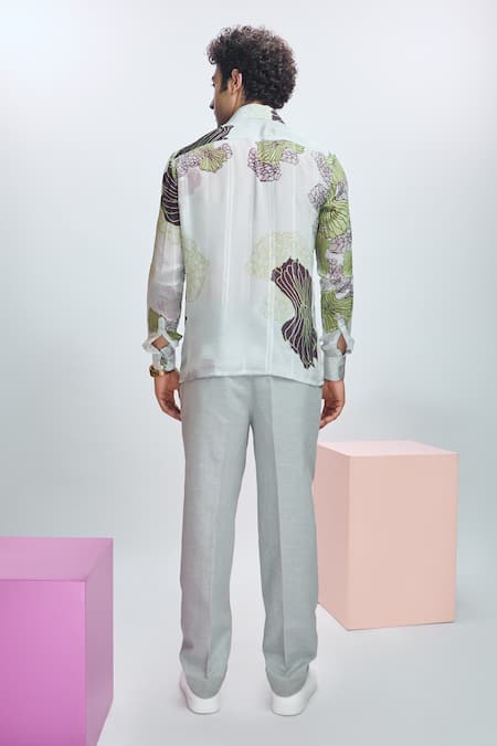 Grey straight fit pant crafted in linen material