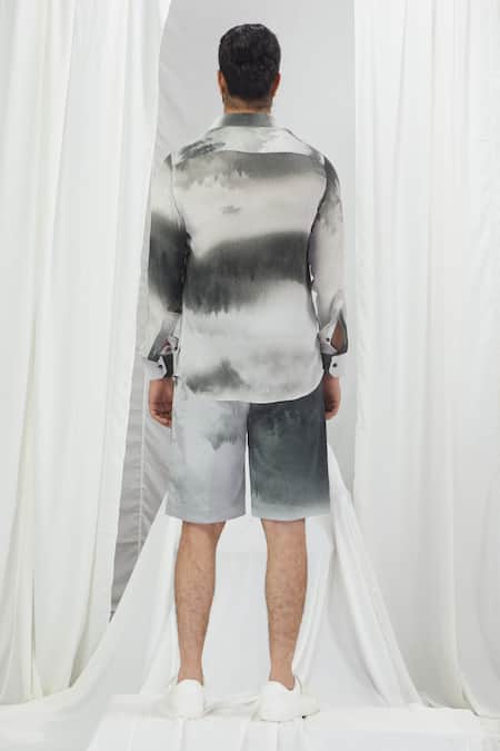 White Crepe Splash Print Shirt