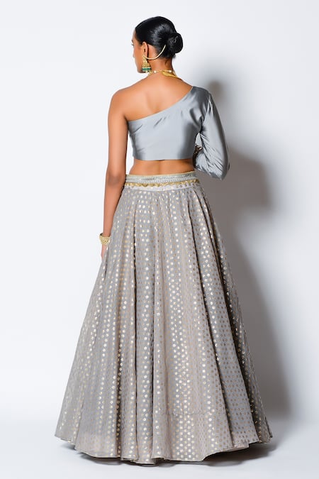 Buy_Rishi and Vibhuti_Grey Nisha One Shoulder Blouse And Lehenga Set _at_Aza_Fashions