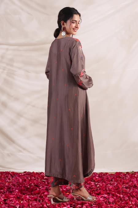 Buy_Label Niti Bothra_Brown Silk Embroidery V-neck Bahaar Bloom Print Kurta And Palazzo Set _Online_at_Aza_Fashions