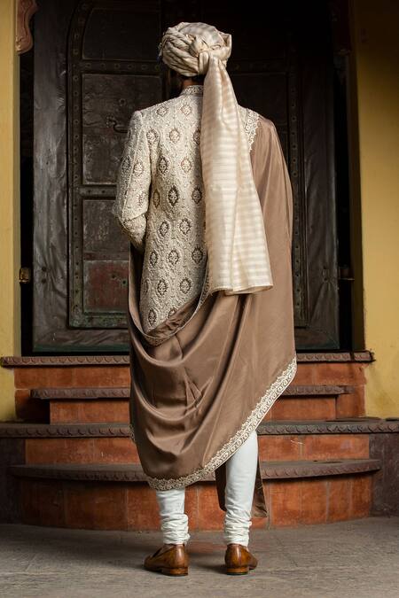 The safa, kurta, sherwani and pant worn by the model are not for sale.