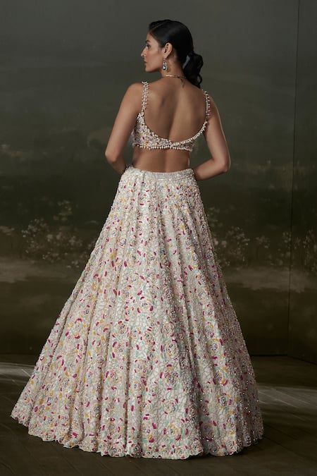 Ivory Organza, Satin Sequins, Beads, Crystals Florence Embroidered Lehenga Set