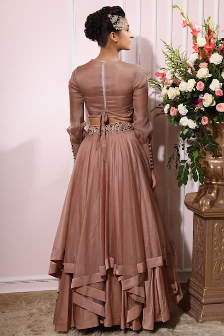 Pink Organza, Satin Blouse Round Embroidered Lehenga Set