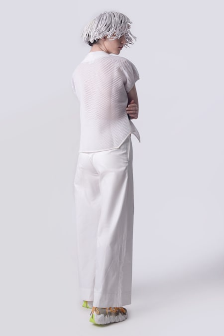 White high neck top featuring 3D cord hand embroidery and half sleeves