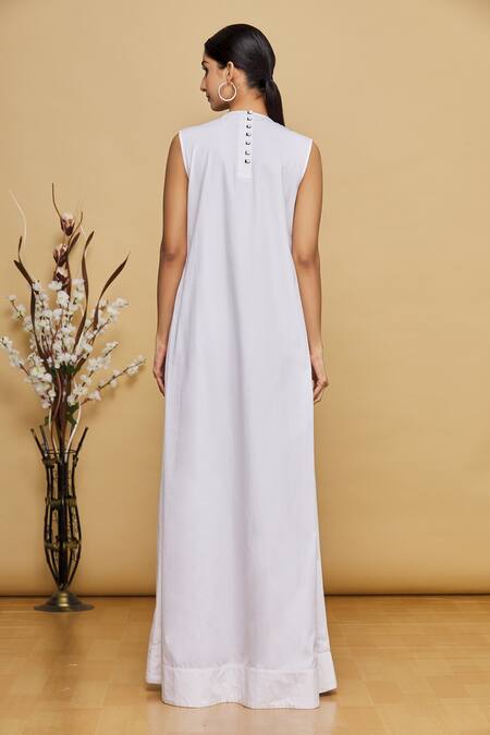 Black & off-white color block long dress with printed details & side pocket.