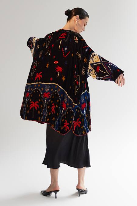 Multi Color Viscose, Silk, Velvet Open Demi Arabian Nights Reversible Poncho