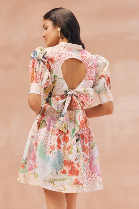Multi Color Cotton Bandeau Neck Grace Blossom Print Dress