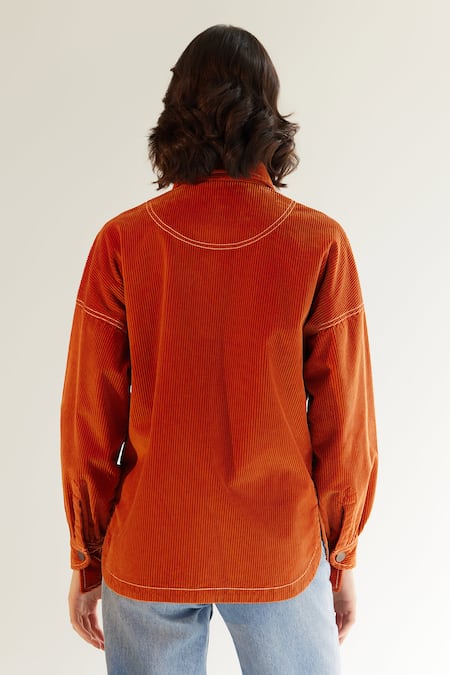 Orange Cotton, Twill Embroidery Collared Xena Overshirt