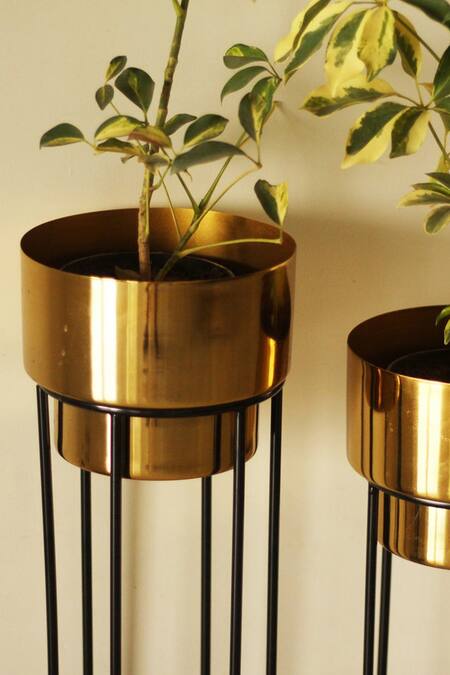 Buy_Kaksh Studio_Gold Aluminium And Iron Noir Planter With Stand Set Of 2_at_Aza_Fashions