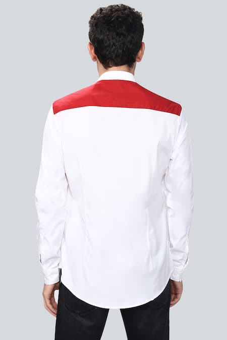 White shirt with ombre typographic embroidered motifs & contrast panel.