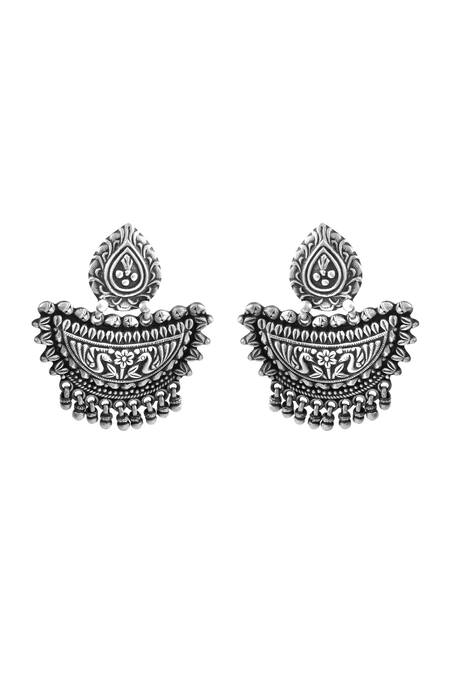 Buy_Noor_Silver Plated Diya Ghungroo Embellished Carved Earrings_at_Aza_Fashions