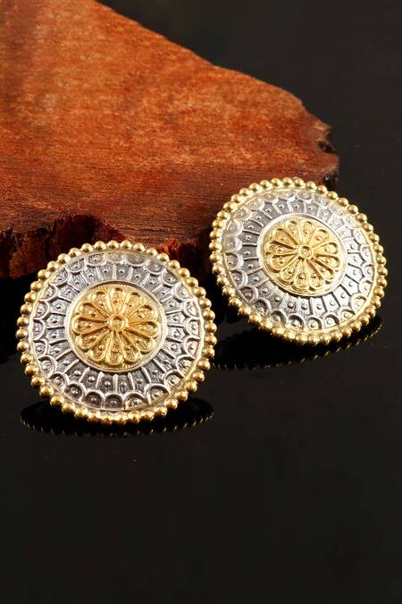 Gold and silver plated floral stud earrings featuring rawa embellished work