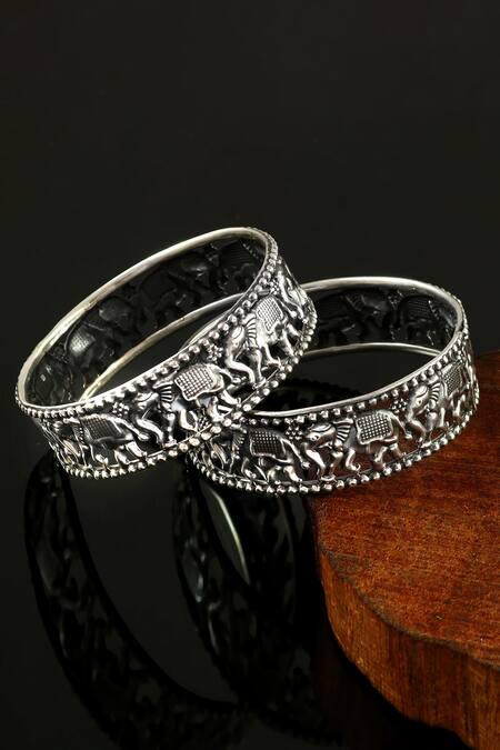 Buy_Noor_Silver Plated Elephant Design Oxidized Bangle - Set Of 2_at_Aza_Fashions